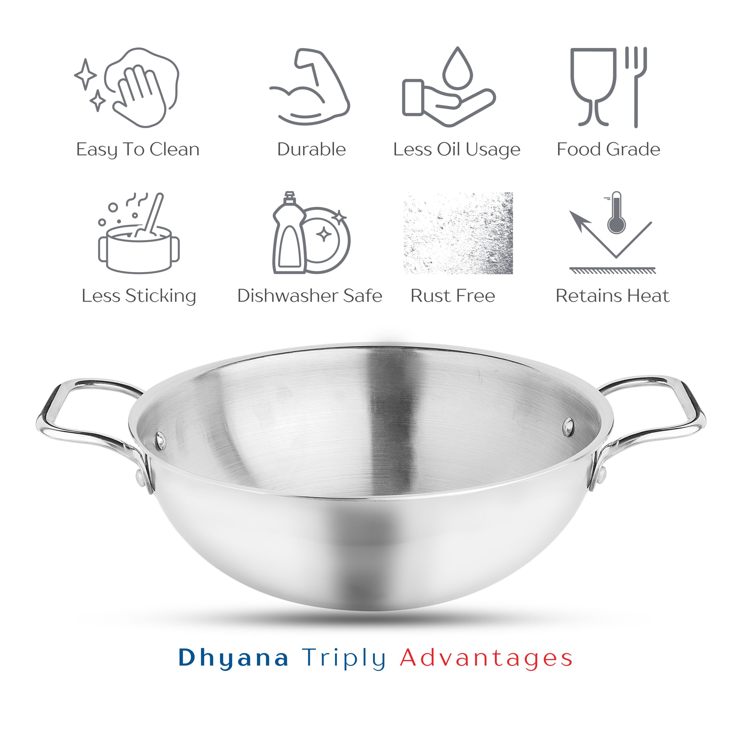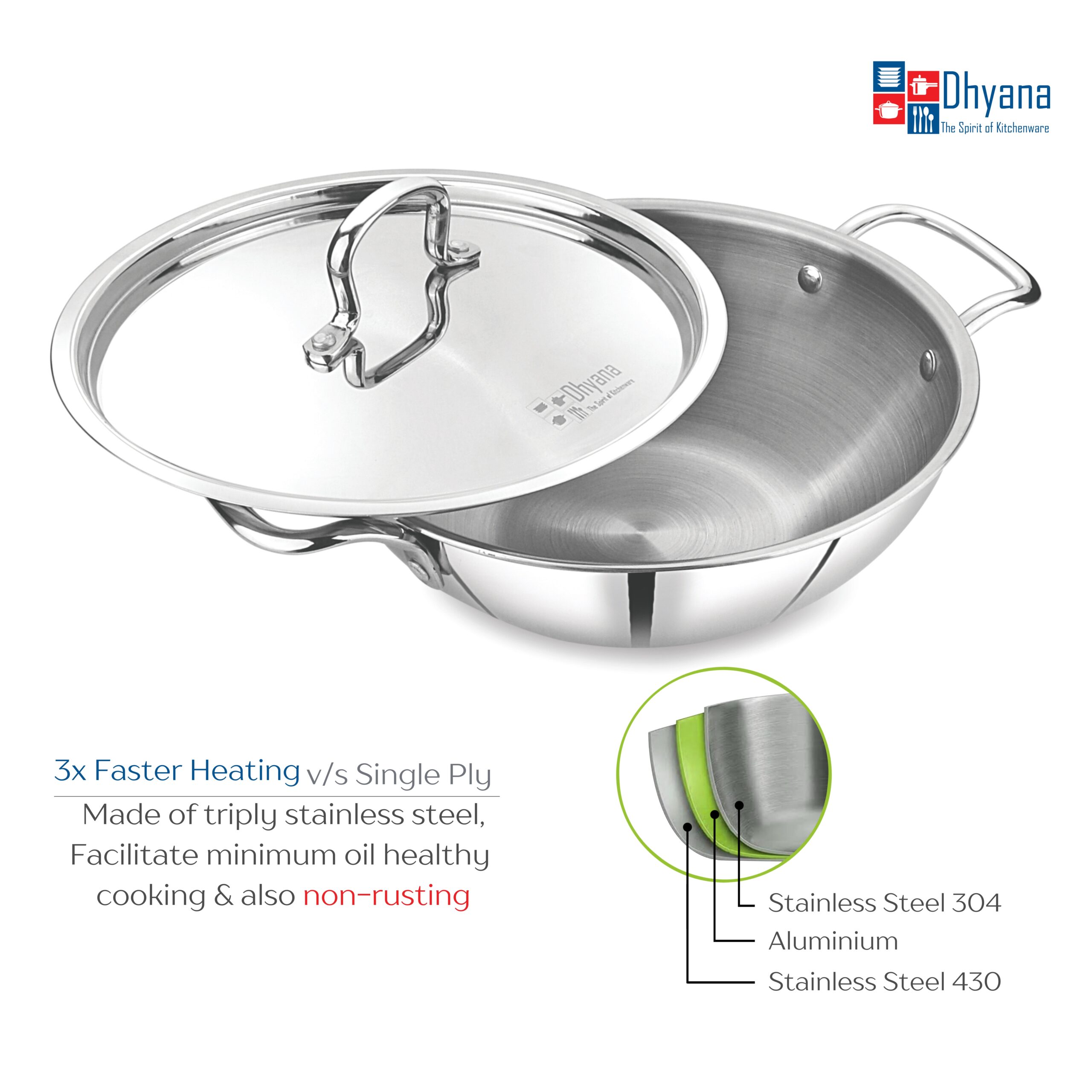- Even Heat Distribution : Aluminum Layer Sandwiched between steel layer enables heat to spread evenly.
